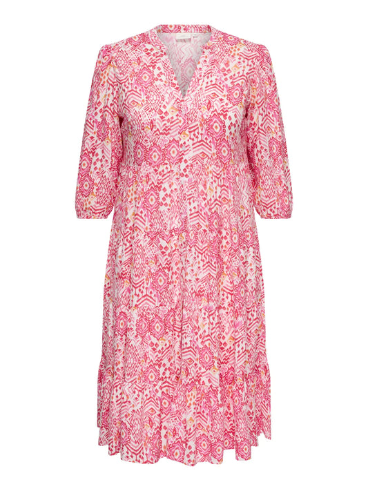 ONLY CARMAKOMA CARCAMILLE 3/4 V-NECK SHIRT AOP