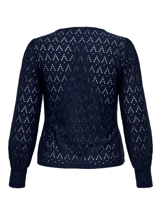 ONLY CARMAKOMA CARCATTLEYA L/S O-NECK TOP JRS BLAUW