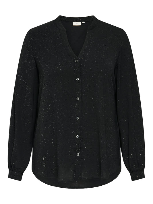 ONLY CARMAKOMA CARJOSEE METTA LIFE L/S V-NECK SHIRT ZWART/GLITTER