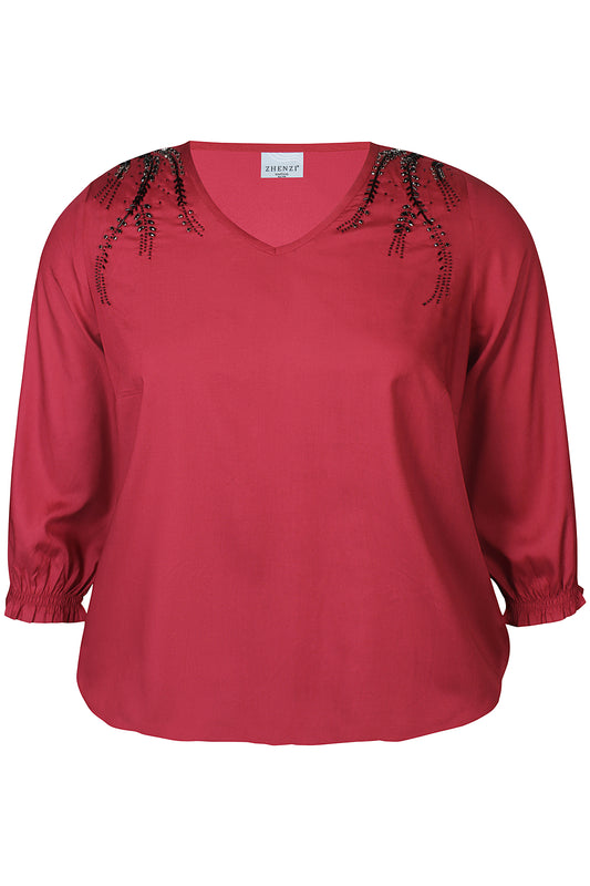 Zhenzi Zh-Vada 1125-Blouse 3/4 Burgundy red