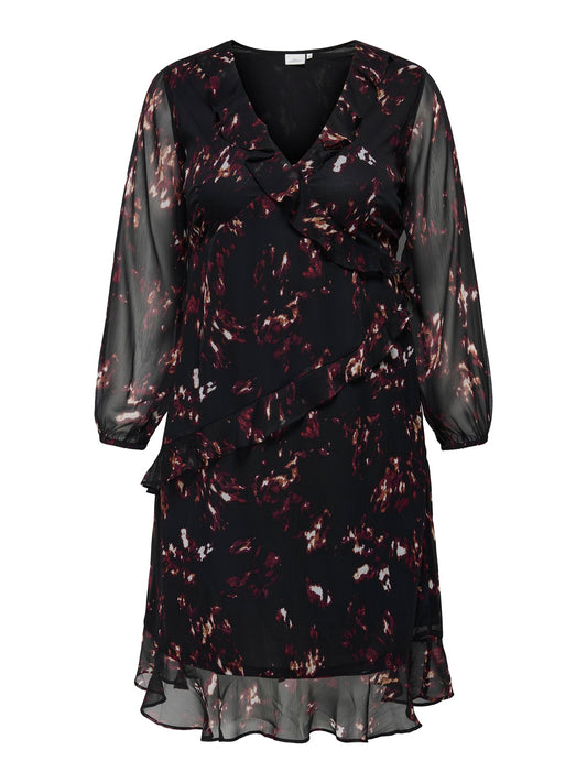 ONLY CARMAKOMA CARINDIGO LIFE LS CALF DRESS AOP BF