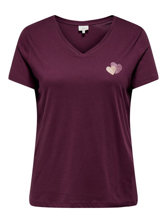 ONLY CARMAKOMA CARBONNIE LIFE S/S V-NECK REG TEE JRS BORDEAUX