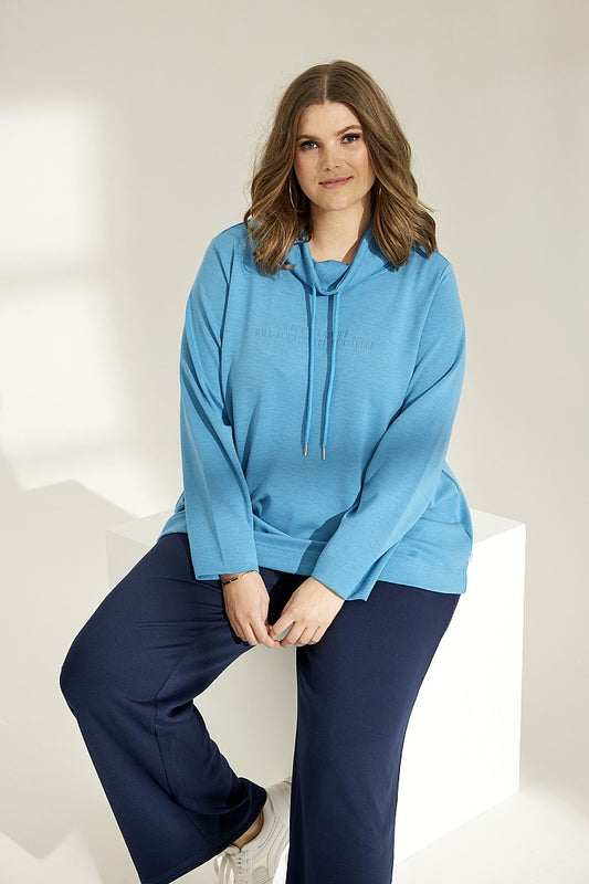 ONLY CARMAKOMA CARSOFIA L/S WORD O-NECK SWT JRS BLAUW