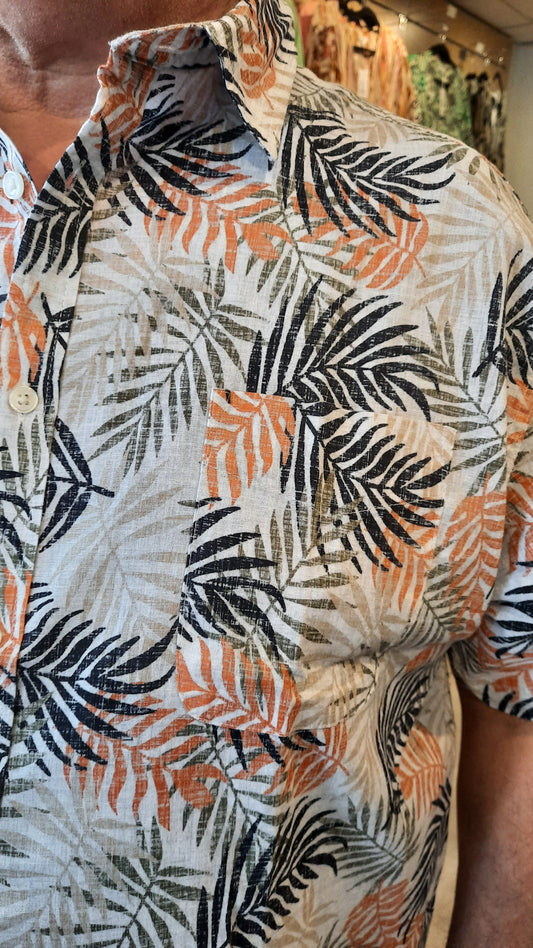 Casa Moda overhemd bladmotief mixed orange