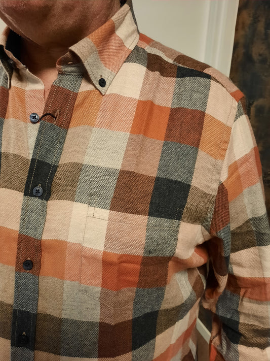 Casa Moda overhemd oranje bruin blok