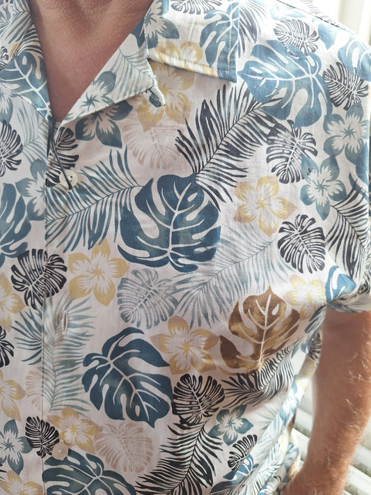 North 56 Overhemd/ Resortshirt Beige/ zwart