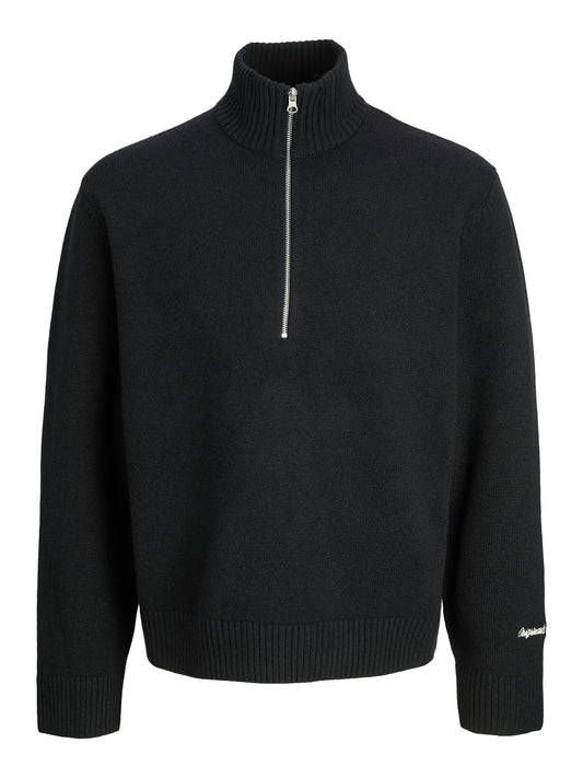 JACK&JONES JORNORREBRO KNIT HALF ZIP PLS ZWART