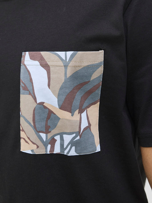 JACK&JONES JORTAVIRA AOP POCKET TEE SS CREW ZWART
