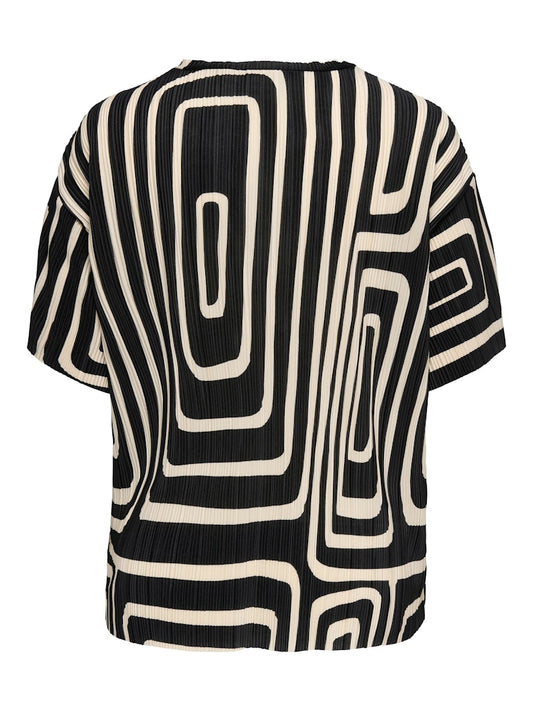 ONLY CARMAKOMA CARRAVENNA S/S PLISSE AOP TOP ZWART/WIT
