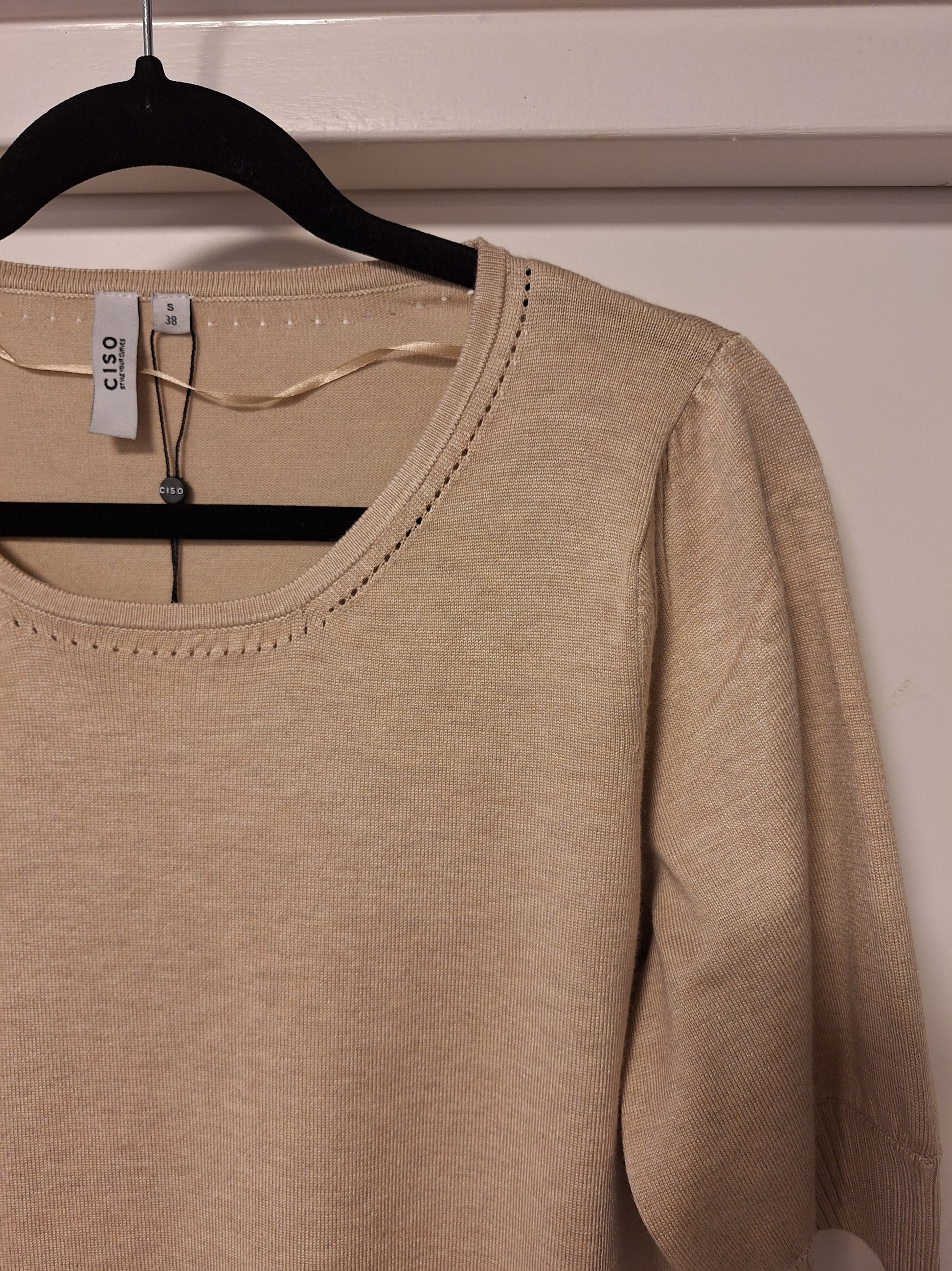 Prachtige kleur en heerlijk dragend materiaal. Dit dunne truitje heeft een ronde hals en korte mouwen die mooi zijn afgewerkt.