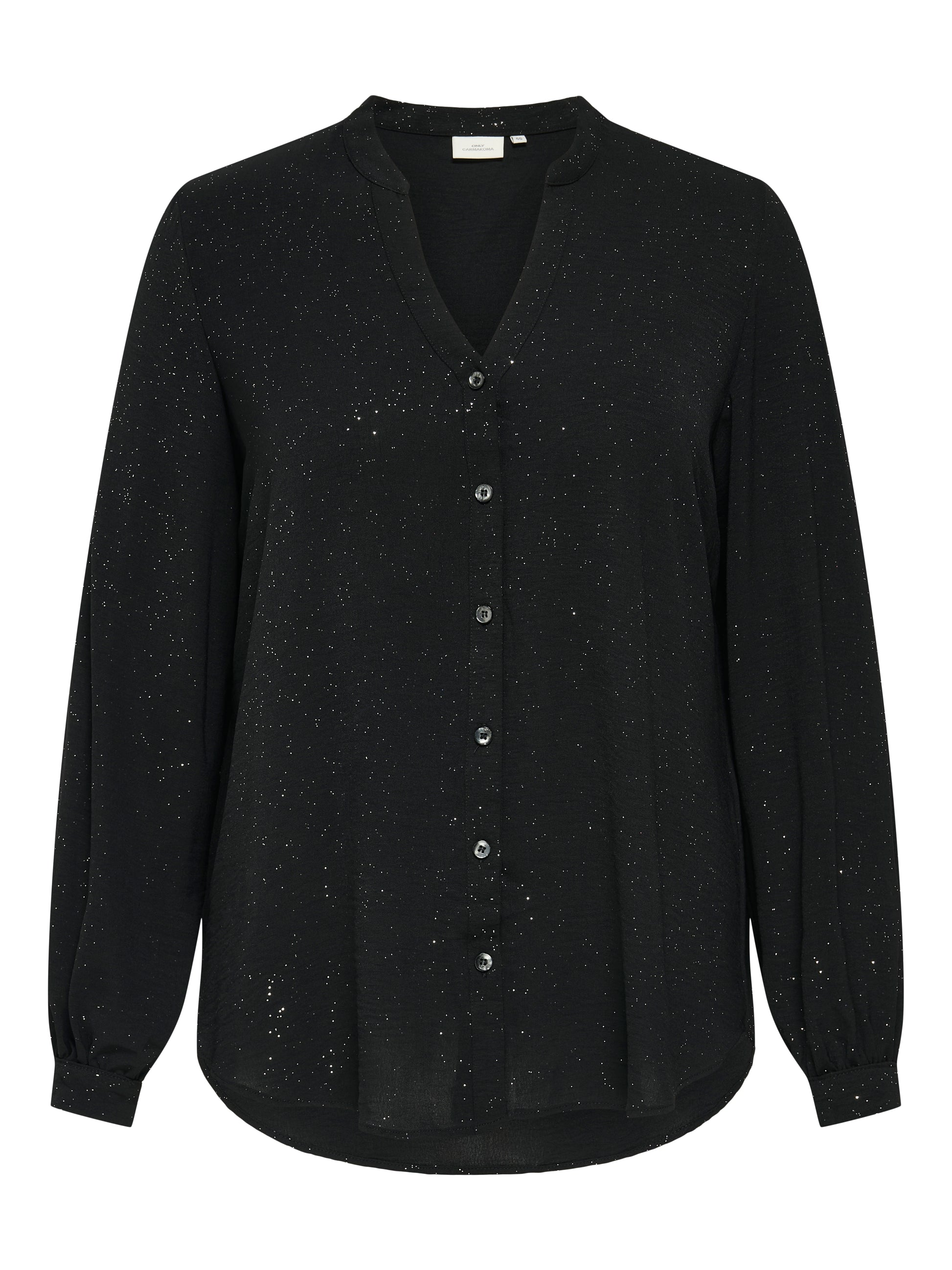 ONLY CARMAKOMA CARJOSEE METTA LIFE L/S V-NECK SHIRT ZWART/GLITTER