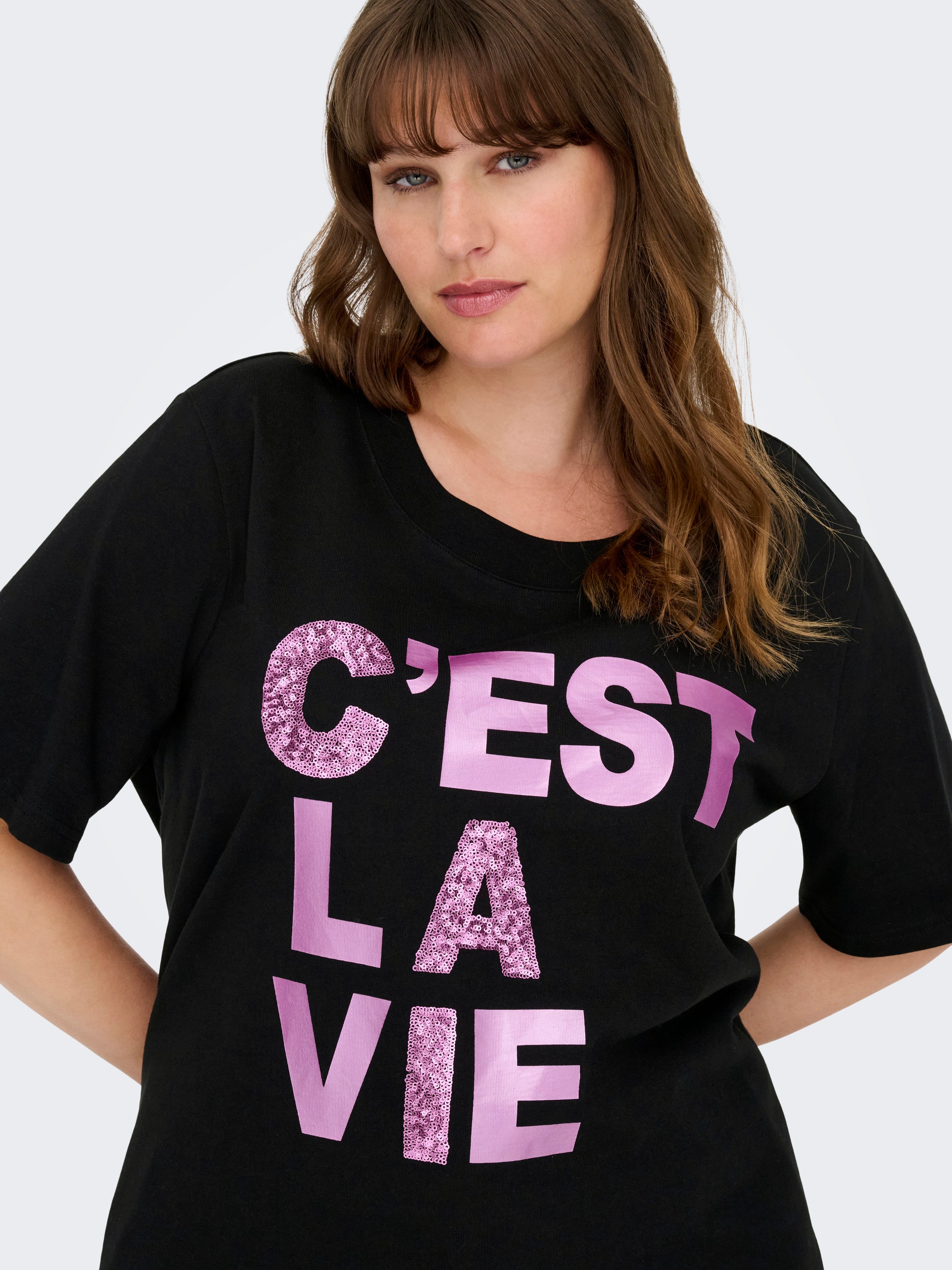ONLY CARMAKOMA CARRIRI 2/4 O-NECK BOXY TEE JRS ZWART
